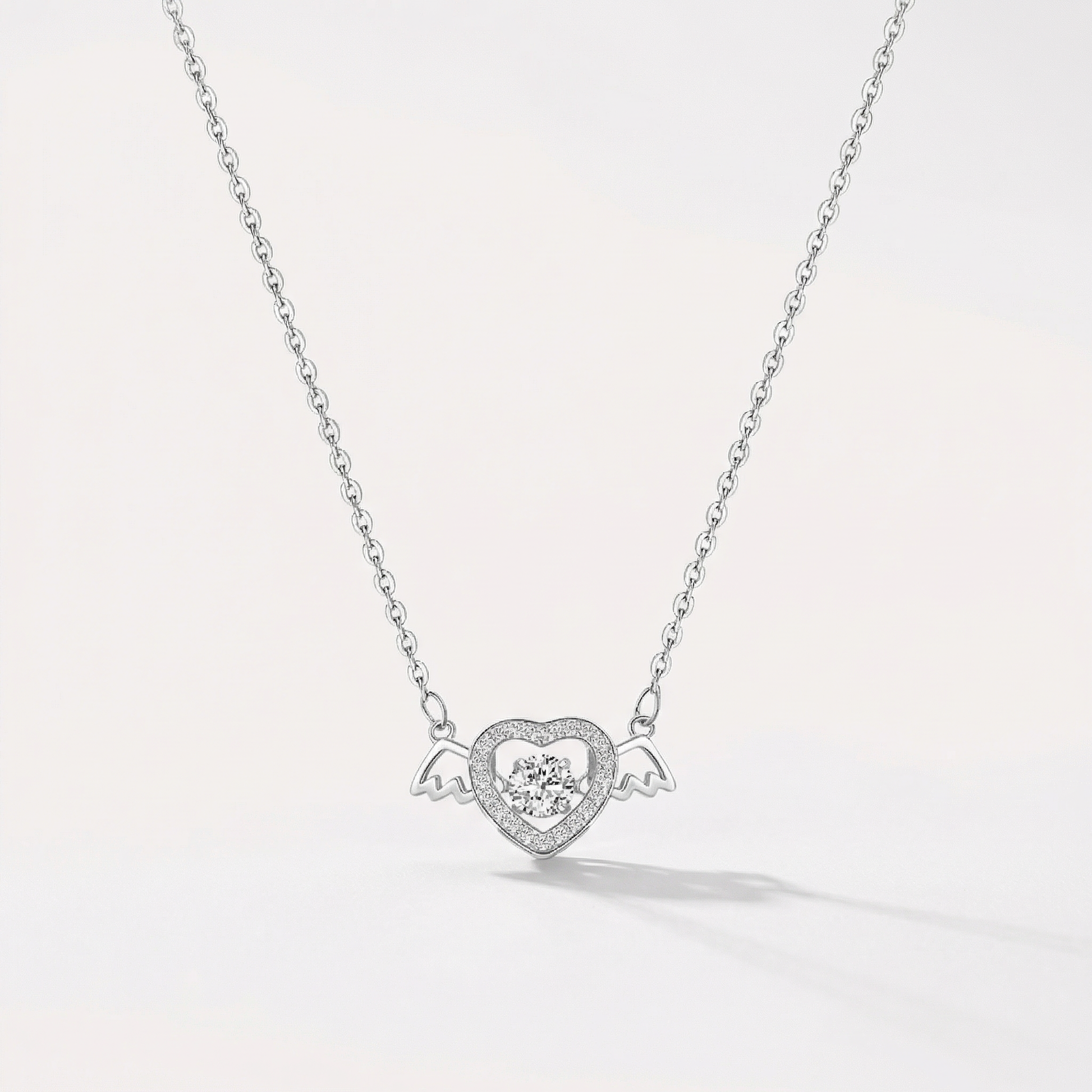 La collana Angel Heart racchiude al centro una pietra danzante: un cuore incorniciato da delicate ali. Realizzata in argento sterling 925 riciclato, la pietra si muove con te, catturando la luce nei momenti di silenzio.